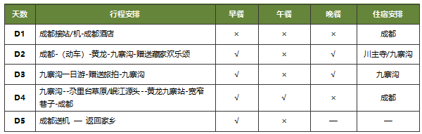 备注:如要参加千古情晚会或九寨沟藏羌风情晚会,可告知导游, 由导游代买门票