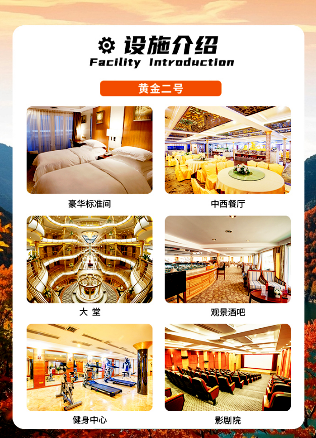 3、住宿:两晚黄金游轮双人标间或者其他房型(以客人预定房型为准);