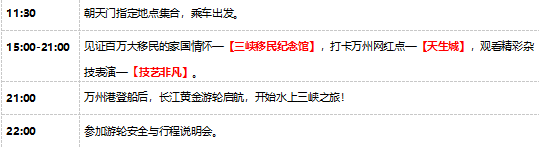 1、景点:李子坝轻轨穿楼、渣滓洞、白公馆、千年古镇磁器口、桂园、洪崖洞、三峡移民纪念馆、天生城、技艺非凡、白帝城、三峡大坝;赠送景点不游览不退费;