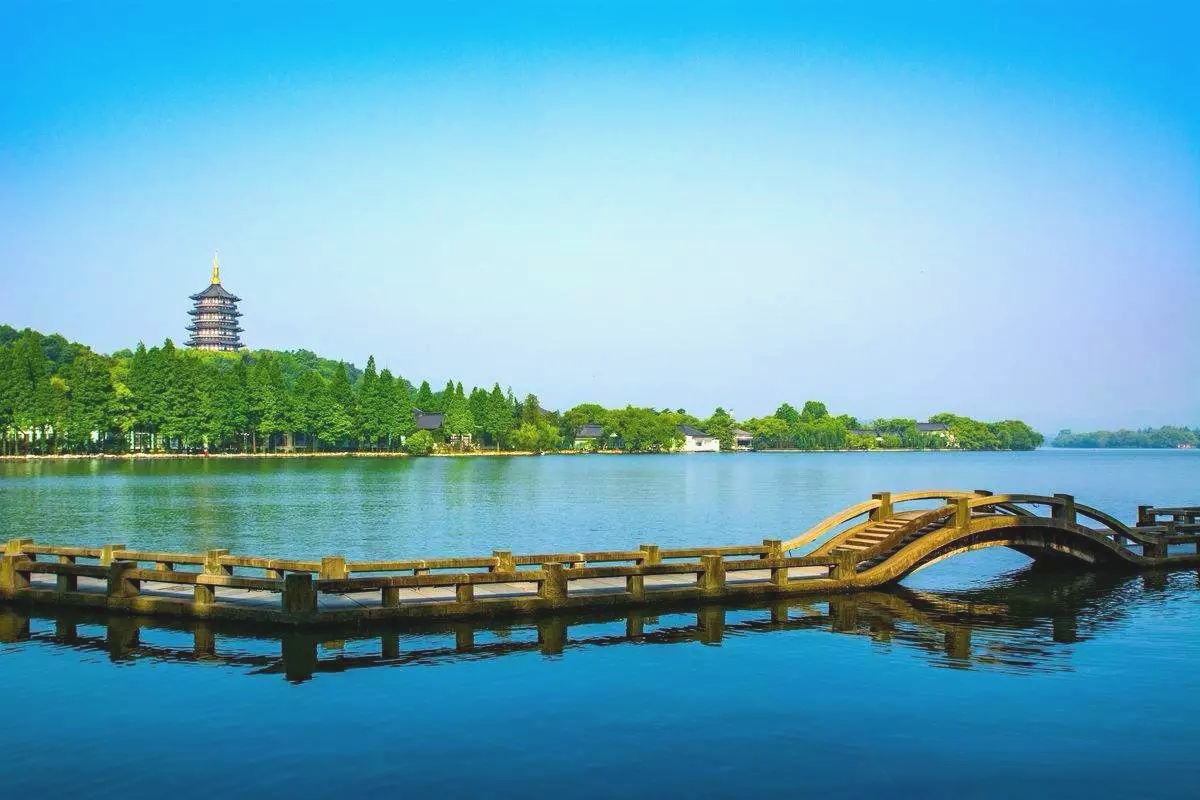 09:10左右【乘游船环游西湖】(不少于45分钟),感受“水光潋滟晴芳好”的意境,远观三潭印月、苏堤春晓、平湖秋月、断桥残雪、宝石流霞;