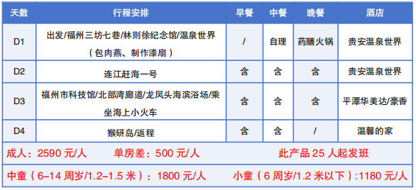 1.交通:杭州到福州往返车票二等座,福建省内全程用车,按我社成团人数选择车型,每人确保正座;