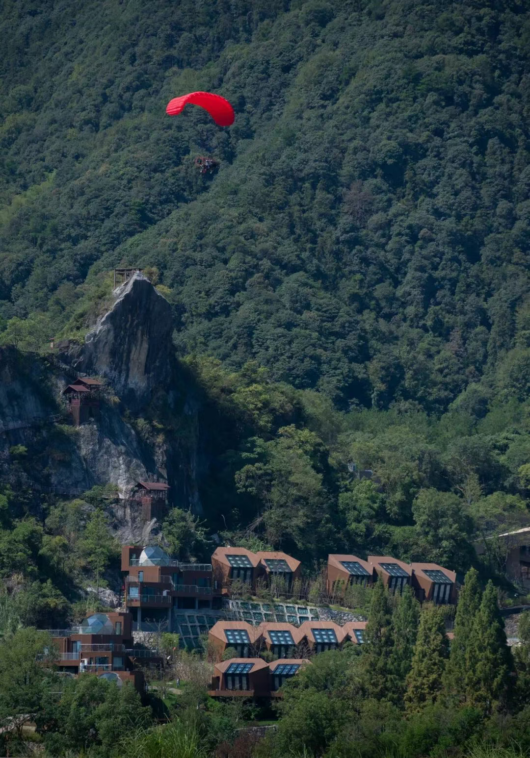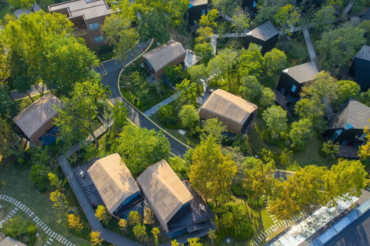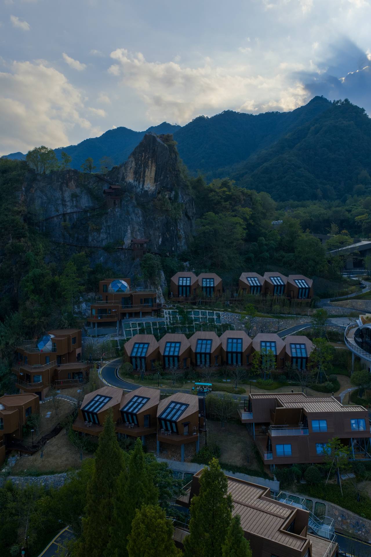 酒店保留了老建筑群、登山栈道、石窟古寺的历史脉络,以“外·泊家”为新解,重新定义“森泊式度假”:向外探索自然本真的原野,向内安顿身心灵魂的智慧,最终回归家的温暖归属。