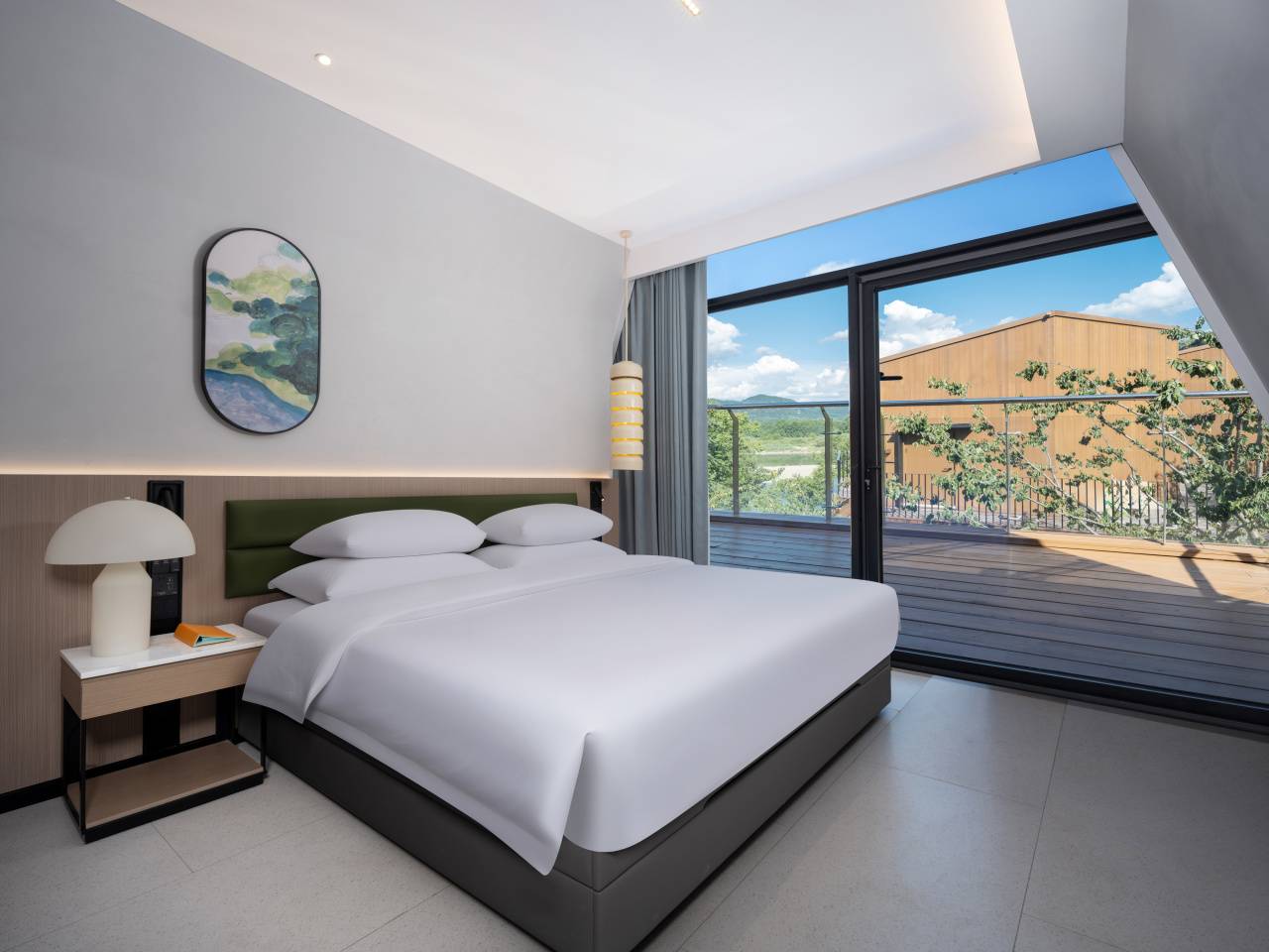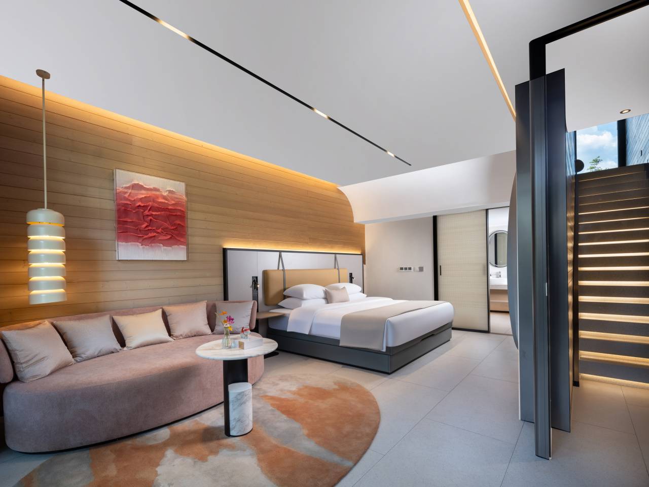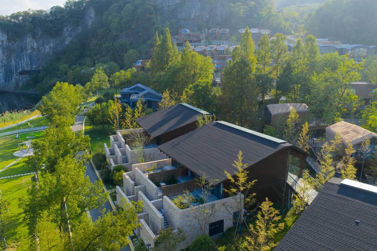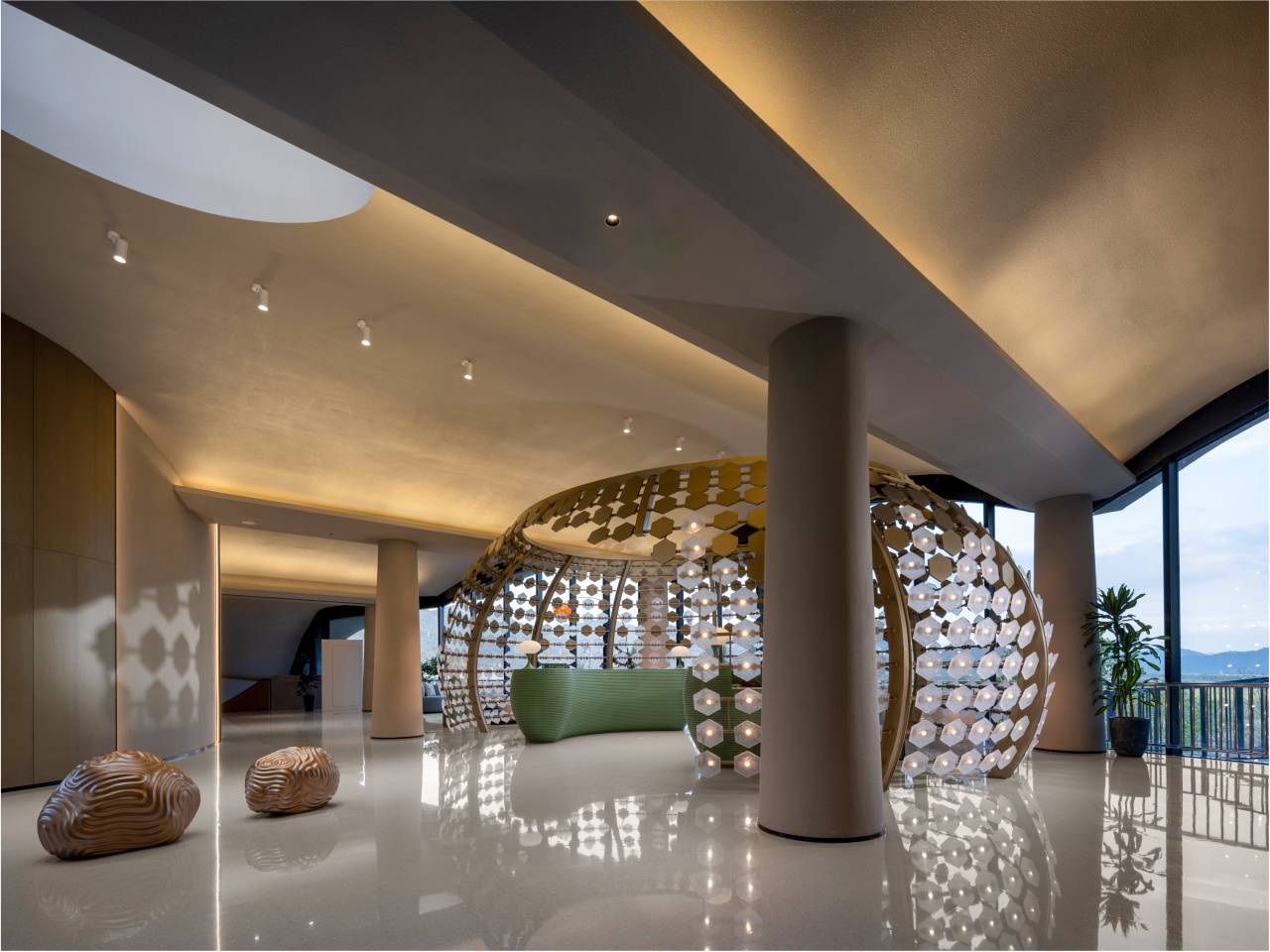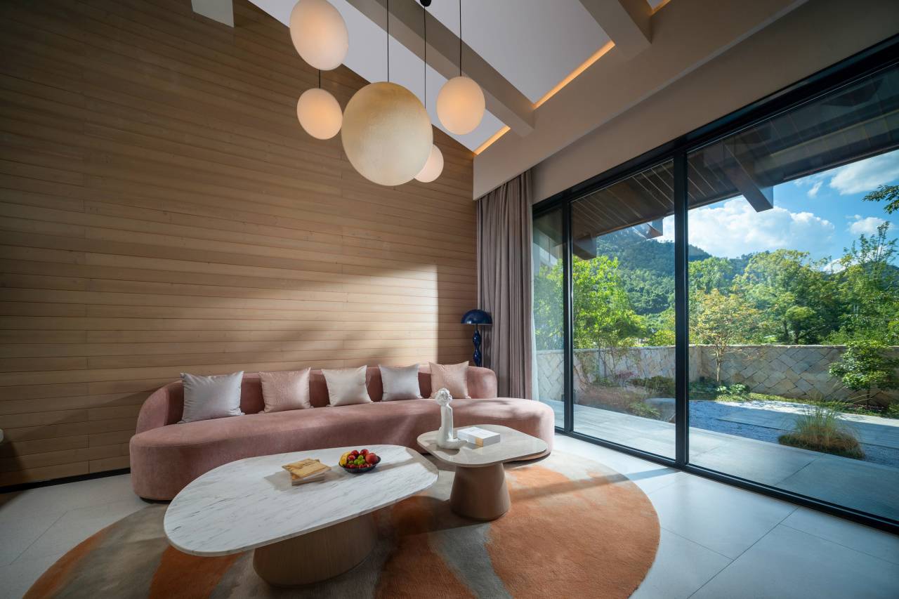 结合其独特的自然环境,打造出室内外儿童乐园、登山步道、粉色栈道及溶洞咖啡等休闲体验场景,同时还配备着汤泉泳池中心、文化街区和撸猫馆等互娱空间;酒店希望创造一个拥有自然美感与纯粹欢乐的全年龄段的度假胜地。