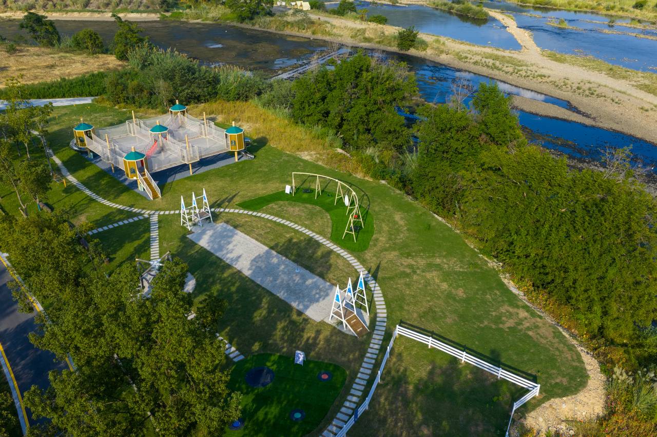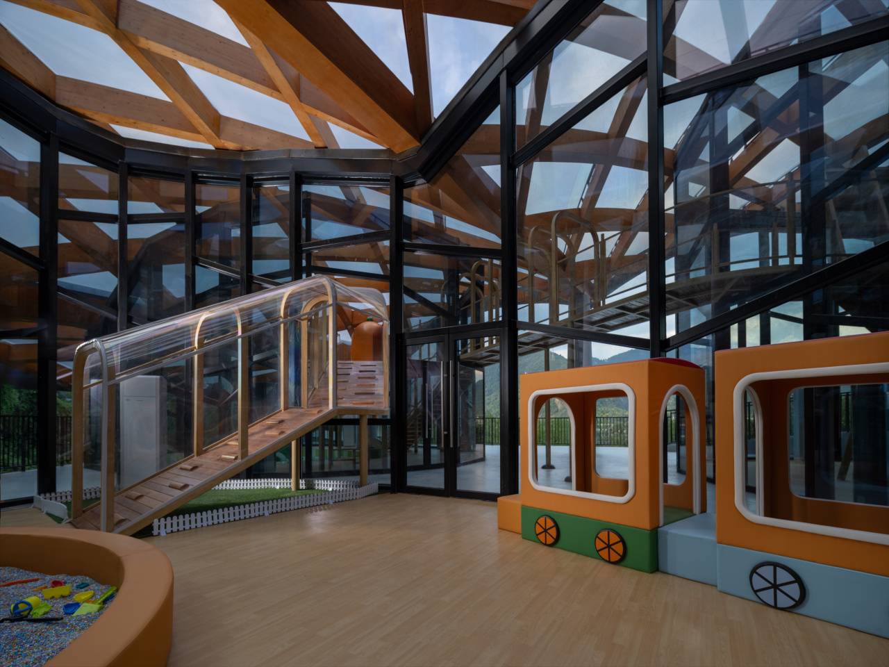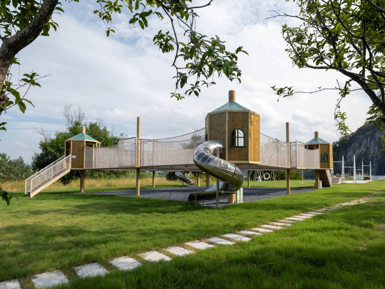 江畔旁的无动力乐园: 酒店特意打造了户外无动力乐园,它不同于喧闹的传统电子乐园。孩子们在此通过攀爬、滑行、跳跃,在纯粹的木质与绳索设施中,依靠自身的力量去探索边界、挑战自我,重新发现最本真的玩耍乐趣,这正是“玩在自然”哲学最生动的体现