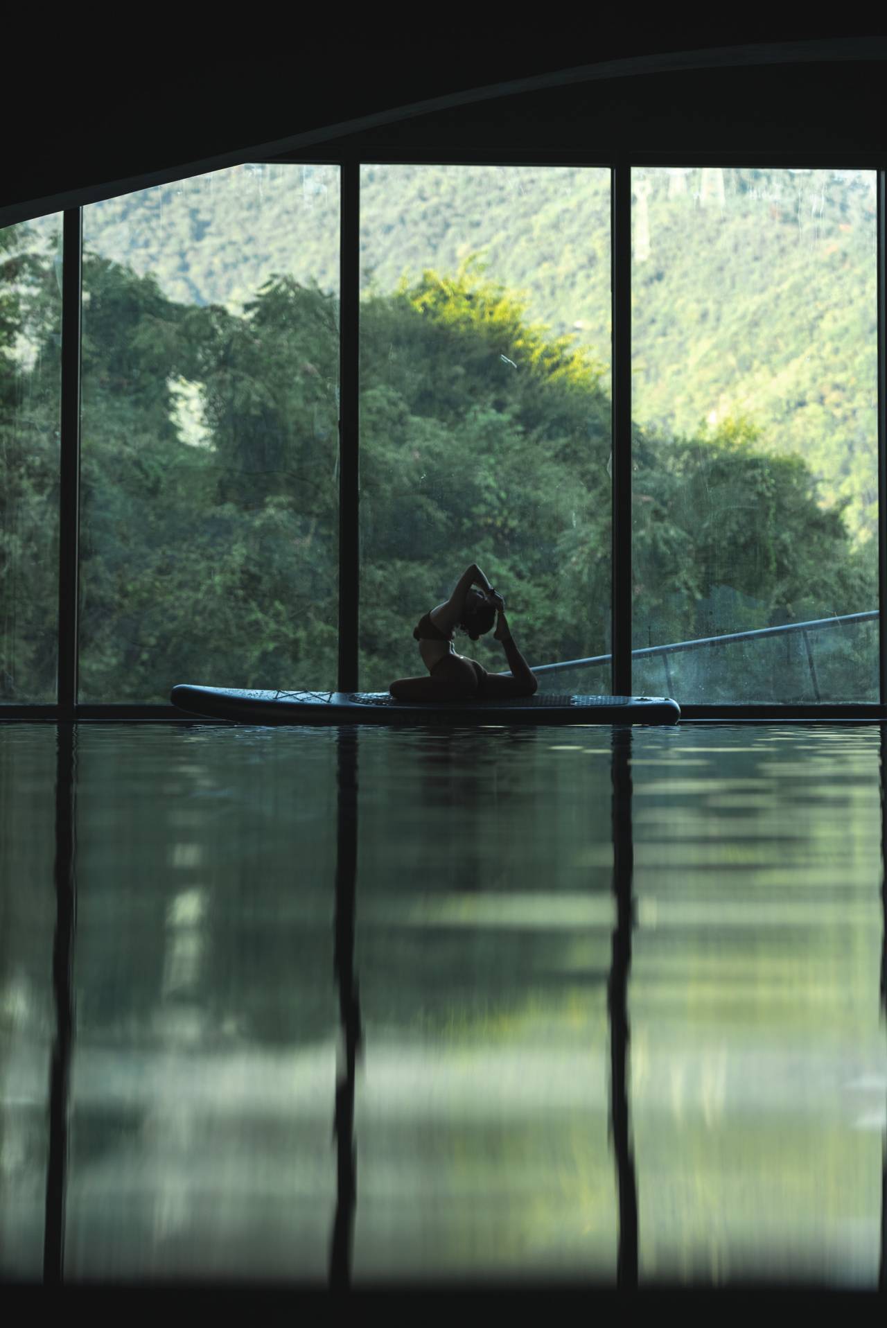 酒店山顶是SPA&泳池区域。其中最具特色的是跨越两山谷的长长泳池,SPA隐藏在山水间,与山谷相依。
