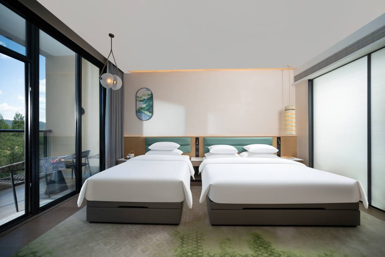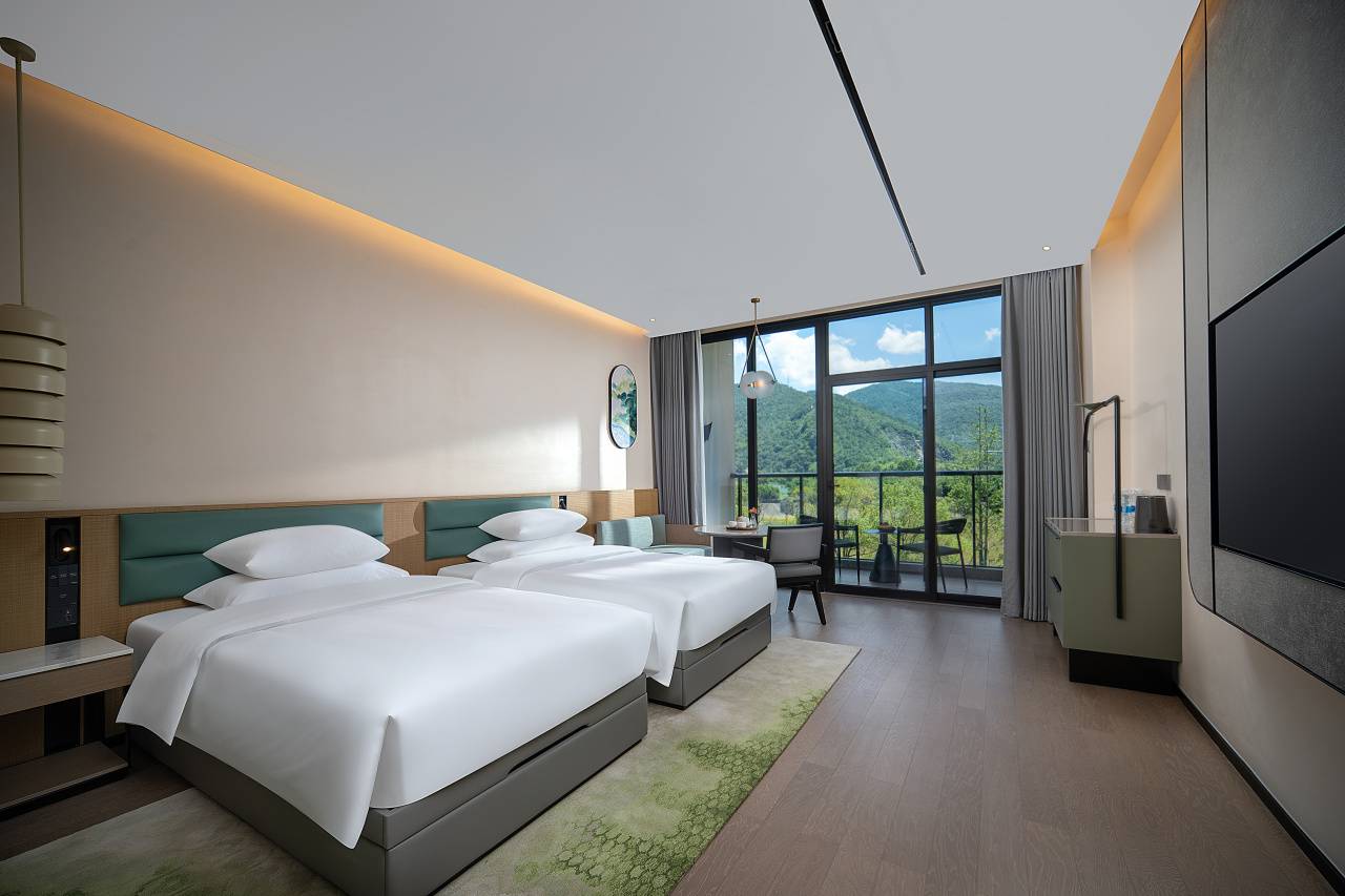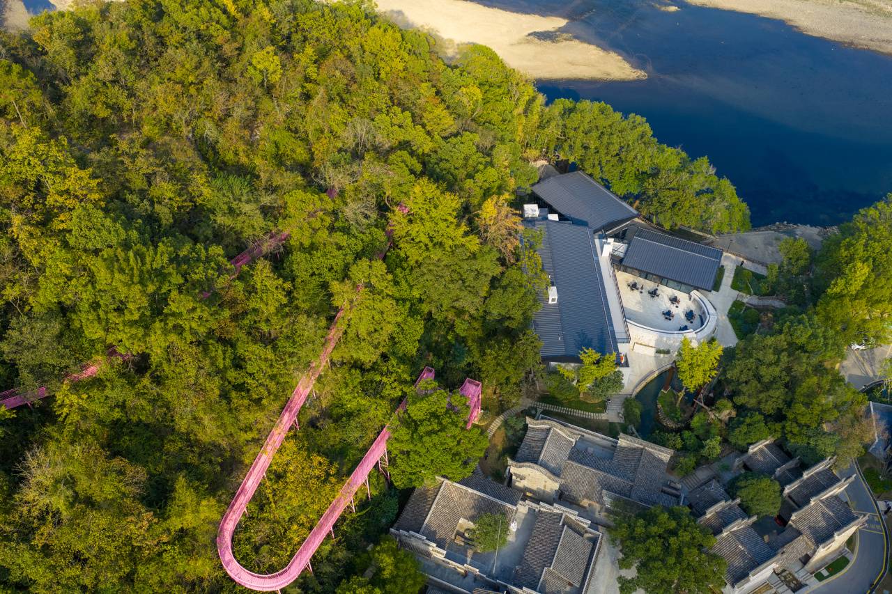 桐庐森泊外婆家践行着与山水共生的设计哲学。建筑以谦逊的姿态融入山水,成为连接人与自然的情感纽带。酒店将215间/套特色客房巧妙地安置在山岚树影之间,让每一间房都成为盛装自然的容器。