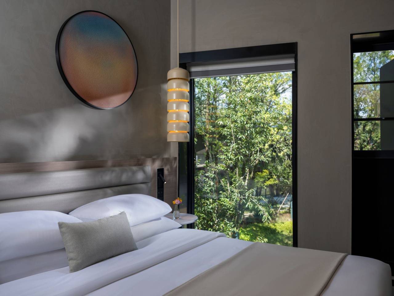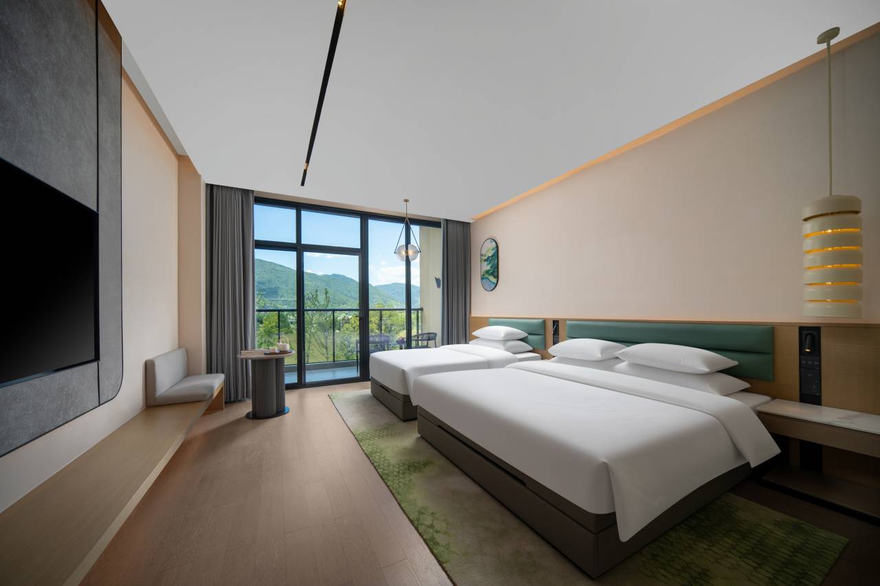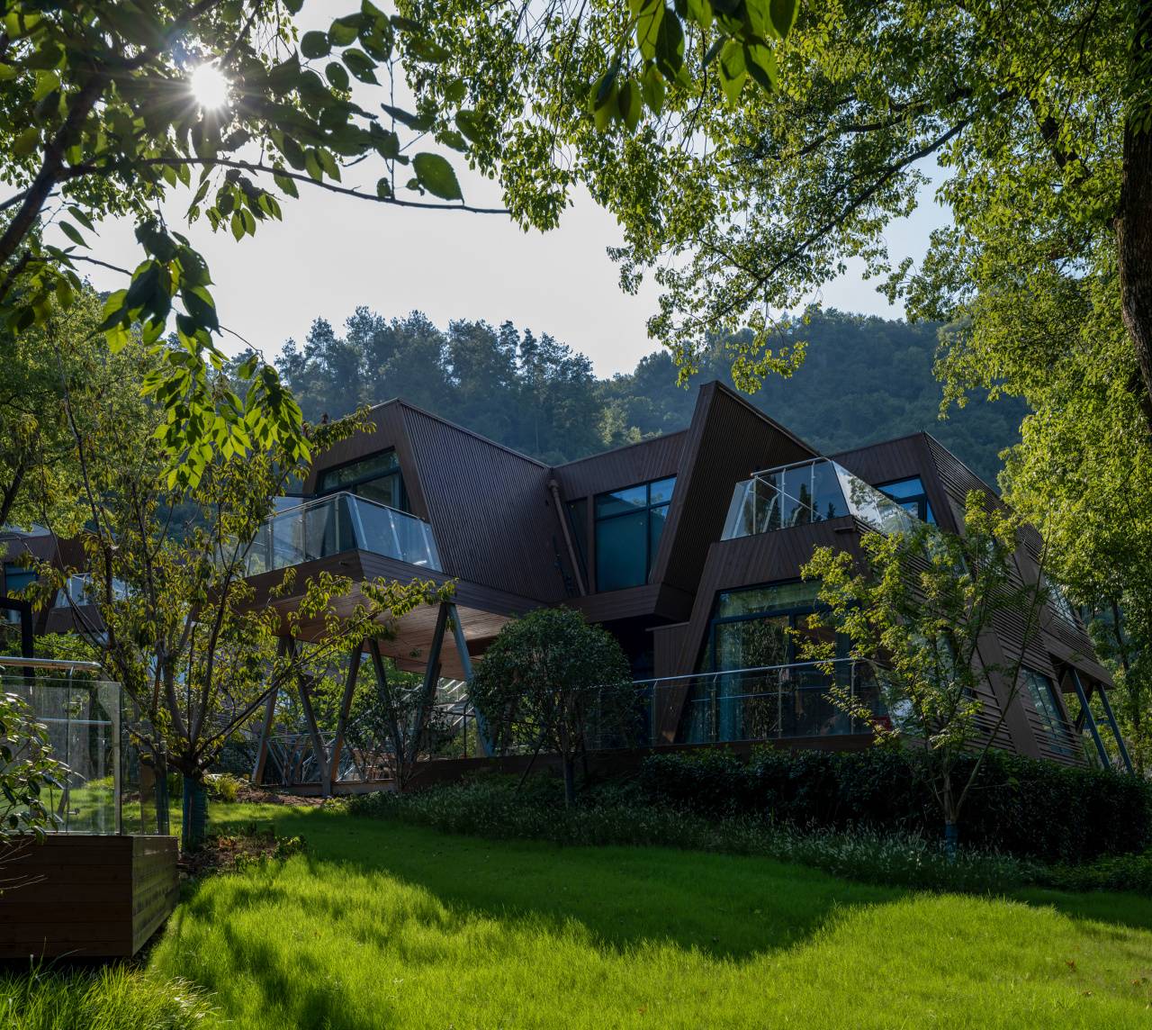 桐庐森泊外婆家践行着与山水共生的设计哲学。建筑以谦逊的姿态融入山水,成为连接人与自然的情感纽带。酒店将215间/套特色客房巧妙地安置在山岚树影之间,让每一间房都成为盛装自然的容器。
