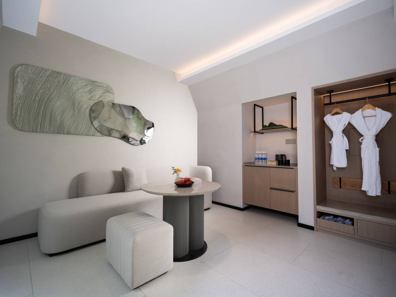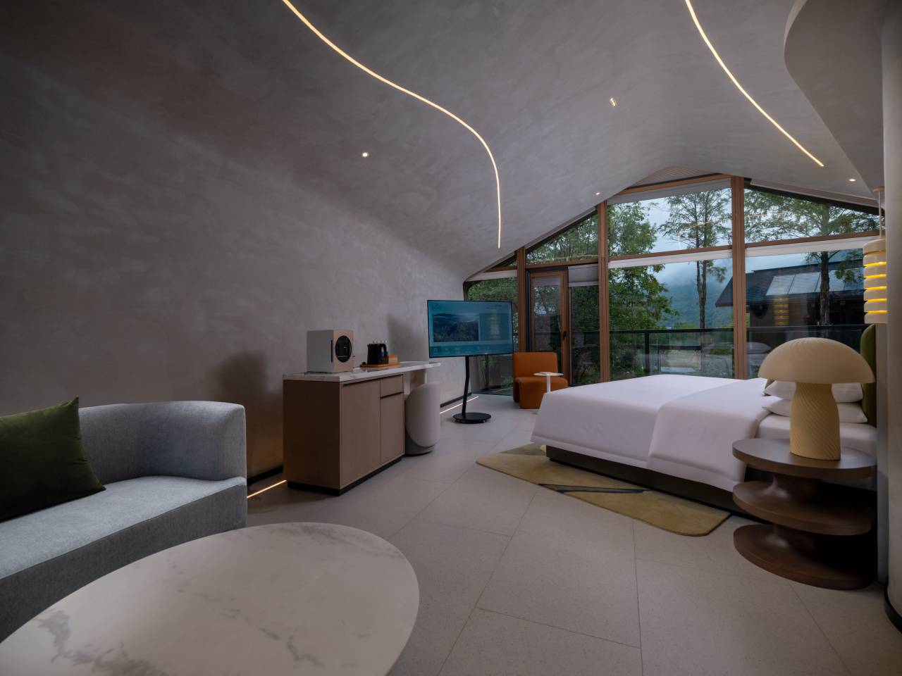 木屋庭院复式套房作为拥有专属庭院的复式套房,将舒适空间向自然延伸。庭院直面苍翠山景,成为私密的观景平台,无论是晨起品茗还是夜间观星,都能在此实现与山野的直接对话。
