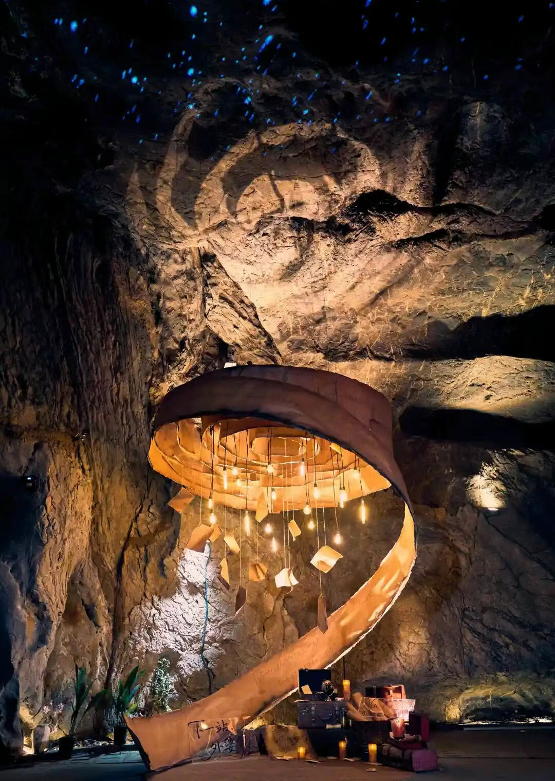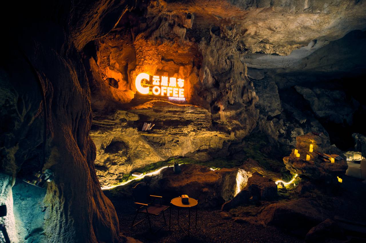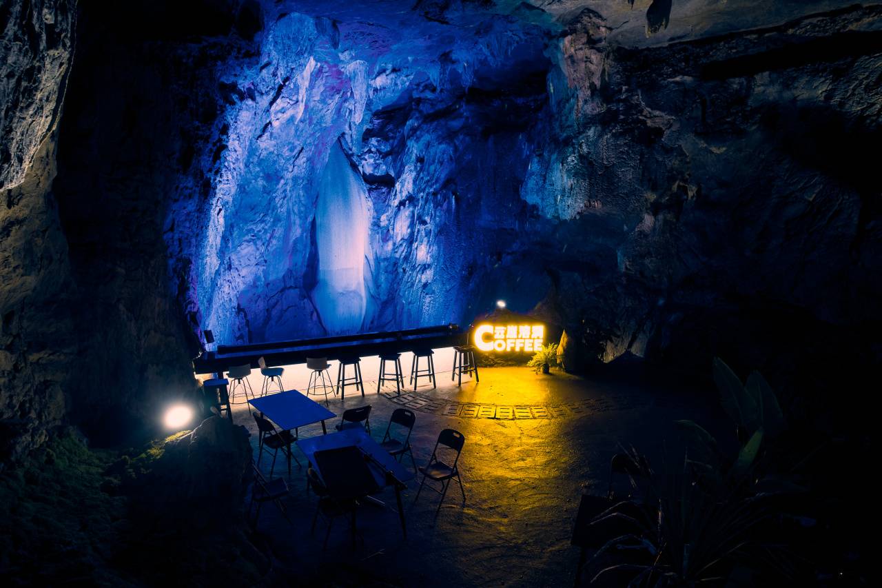 溶洞咖啡是酒店对“野生感”最独特的诠释。在天然形成的溶洞中,亿万年积淀的地质肌理成为空间的天然装饰,手持一杯现磨咖啡,在钟乳石与光影的陪伴下细品,仿佛完成一场在时光深处与当下的对话。